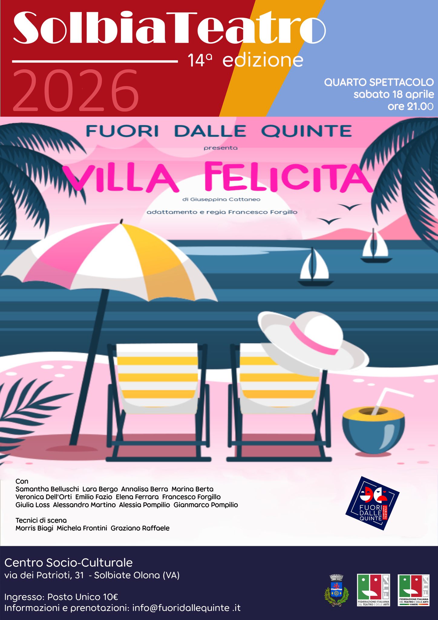 Sabato 18 aprile alle ore 21.00 al Centro Socio-Culturale di Solbiate Olona, ultimo appuntamento di SolbiaTeatro 2026.