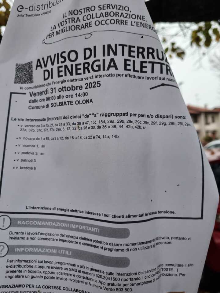 E-Distribuzione comunica che l'energia elettrica verrà interrotta per effettuare lavori