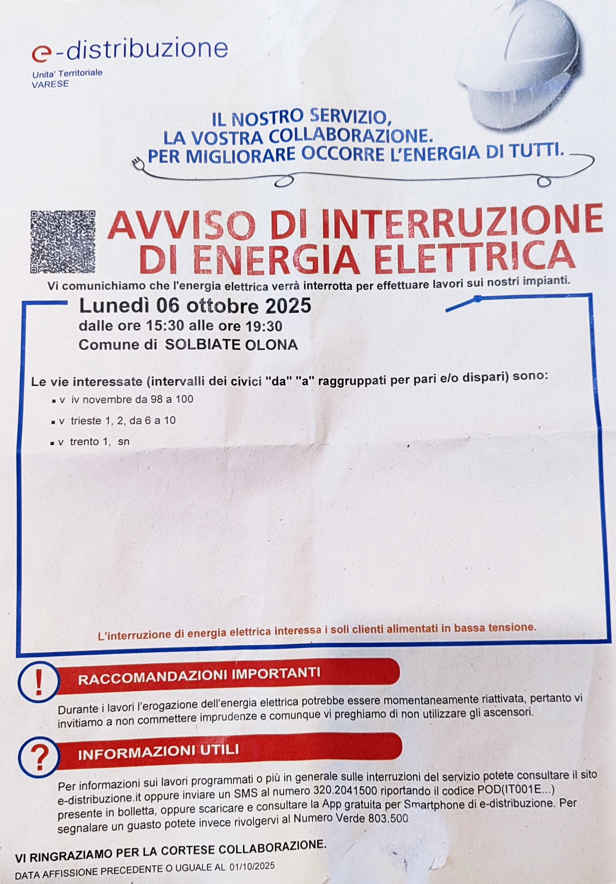 - AVVISO di INTERRUZIONE DI ENERGIA ELETTRICA